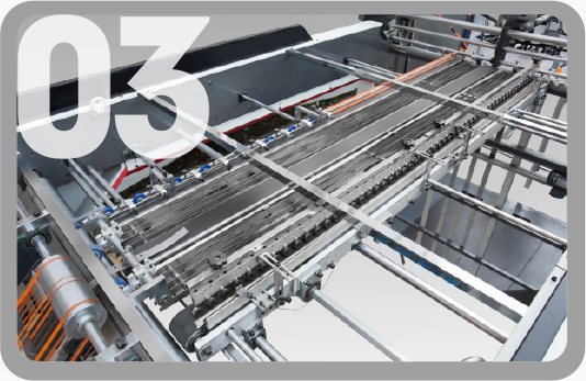 采用特殊網紋輪設計,精細研磨,保證涂膠均勻。下輯采用水輾清洗。